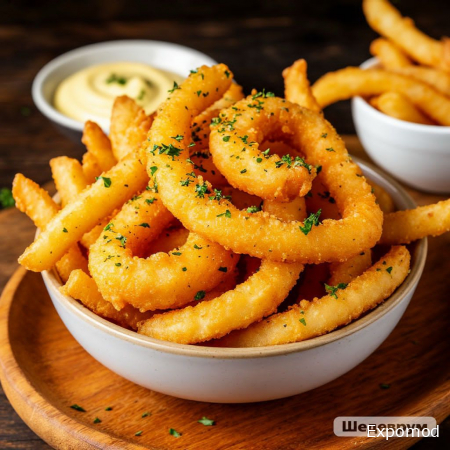 Кальмары фри с соусом айоли: морской аромат, хрустящая корочка и идеальный соус Кальмары фри с соусом айоли — одно из тех блюд, которые мгновенно вызывают ассоциации с морем, тёплым берегом и лёгкой средиземноморской кухней. Это закуска, которая стала популярной во многих странах благодаря своему простому, но выразительному вкусу: хрустящая панировка, нежное мясо кальмара и ароматный соус создают идеальную гармонию. Главная особенность кальмаров фри — это текстура. При правильном приготовлении кальмары остаются мягкими и сочными внутри, а снаружи приобретают золотистую, хрустящую корочку. Для этого важно выбрать свежие или качественно размороженные кольца кальмара и правильно подготовить их: очистить, обсушить и приправить. Панировка может быть простой, из муки, или более сложной, с добавлением сухарей, кукурузной муки или специй. В любом случае, задача — создать лёгкую оболочку, которая не сделает блюдо тяжёлым, а лишь подчеркнёт нежность морепродукта. Ключевой элемент, который делает блюдо особенно привлекательным, — соус айоли. Это классический средиземноморский соус на основе оливкового масла, чеснока и яичных желтков. Айоли имеет кремовую текстуру и насыщенный вкус, который отлично сочетается с морепродуктами. Его можно готовить как в классическом варианте, так и добавляя лимонный сок, зелень или специи, чтобы придать соусу свежесть и лёгкую пикантность. Сочетание кальмаров фри и айоли — это идеальный баланс. Хрустящая корочка и мягкое мясо кальмара создают основу, а соус добавляет глубину вкуса и лёгкую остроту. Айоли подчёркивает морской аромат и делает каждый кусочек более насыщенным. Важно, чтобы соус был свежим и нежным, иначе он может перебить вкус морепродукта. Подача кальмаров фри тоже имеет значение. Часто их подают на небольшом блюде с дольками лимона, который добавляет свежую кислинку и подчёркивает морской вкус. В качестве гарнира можно использовать свежий салат, зелень или лёгкий овощной микс. Такое сочетание делает закуску лёгкой и гармоничной, не перегружая вкус. Кальмары фри с соусом айоли — это блюдо, которое отлично подходит как для дружеских встреч, так и для ресторанного меню. Оно вызывает ощущение праздника и отдыха, но при этом остаётся простым и понятным. Вкусное сочетание хрустящей панировки, нежного кальмара и ароматного соуса делает эту закуску универсальной и любимой многими. Это блюдо — отличный пример того, как морепродукты могут быть поданы максимально вкусно и просто. Кальмары фри с айоли демонстрируют, что в кулинарии важны не только сложные техники, но и правильный выбор продуктов, баланс текстур и гармония вкусов. Fried Calamari with Aioli Sauce: Sea Aroma, Crispy Crust, and the Perfect Dip Fried calamari with aioli sauce is one of those dishes that instantly evokes images of the sea, warm shores, and light Mediterranean cuisine. This appetizer has become popular in many countries thanks to its simple yet expressive flavor: a crispy coating, tender calamari meat, and a flavorful sauce create perfect harmony. The main feature of fried calamari is its texture. When cooked properly, the calamari remain soft and juicy inside while forming a golden, crunchy crust outside. To achieve this, it is important to choose fresh or properly thawed calamari rings and prepare them correctly: clean, dry, and season them. The coating can be simple, made from flour, or more complex with breadcrumbs, cornmeal, or spices. In any case, the goal is to create a light shell that does not make the dish heavy but only enhances the seafood’s tenderness. The key element that makes this dish especially appealing is the aioli sauce. This classic Mediterranean sauce is made from olive oil, garlic, and egg yolks. Aioli has a creamy texture and a rich taste that pairs perfectly with seafood. It can be prepared in a traditional way or enhanced with le