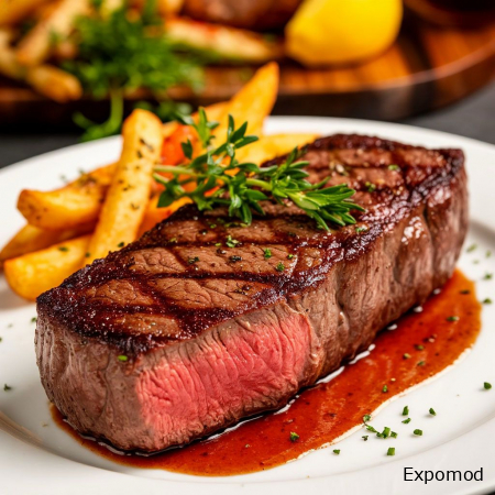 Стейк Нью-Йорк: строгая классика и чистый вкус говядины Стейк Нью-Йорк, также известный как стриплойн, считается воплощением классического подхода к приготовлению говядины. Он ценится за плотную, но при этом сочную текстуру, выразительный мясной вкус и благородную простоту. Этот стейк выбирают те, кто предпочитает чистый вкус мяса без излишней жирности, но при этом ожидает насыщенное гастрономическое впечатление. Нью-Йорк стейк вырезают из поясничной части говядины. В отличие от рибая, он содержит меньше жировых прожилок, однако имеет характерную жировую полоску по краю. Именно она во время жарки плавится и придаёт мясу дополнительную сочность и аромат. Такая структура делает стриплойн сбалансированным: он сохраняет плотность волокон и при этом остаётся нежным при правильном приготовлении. Качество мяса играет решающую роль. Для стейка Нью-Йорк используют говядину с хорошей выдержкой, которая позволяет усилить вкус и улучшить текстуру. Процесс созревания делает мясо более мягким и раскрывает глубокие, слегка ореховые оттенки, которые особенно ценятся в классических мясных блюдах. Приготовление стейка Нью-Йорк требует внимания, но не предполагает сложных техник. Традиционно его жарят на раскалённом гриле или сковороде, используя минимальное количество специй. Соль и свежемолотый чёрный перец подчёркивают природный вкус говядины, не перебивая его. Важно соблюдать температурный режим и дать стейку «отдохнуть» после жарки, чтобы сохранить сочность. Степень прожарки оказывает существенное влияние на вкусовые ощущения. Средне-слабая и средняя прожарка считаются оптимальными для Нью-Йорк стейка, так как позволяют сохранить баланс между сочностью и плотной текстурой. При более сильной прожарке стейк остаётся насыщенным, но требует особого контроля, чтобы не потерять мягкость. Подача стейка Нью-Йорк отличается сдержанностью и элегантностью. Его часто дополняют простыми гарнирами: овощами гриль, картофелем или свежими салатами. Соусы используются умеренно и не должны доминировать над вкусом мяса. Нередко достаточно небольшого кусочка сливочного масла или лёгкого соуса на основе трав. Стейк Нью-Йорк — это выбор тех, кто ценит классику и ясность вкуса. Он не стремится удивить сложными сочетаниями, а демонстрирует уважение к качественному продукту и правильной технике приготовления. Чёткая текстура, насыщенный вкус и благородная простота делают этот стейк символом традиционной мясной гастрономии и неизменным фаворитом ценителей говядины. __________________________________________________________________________________________________________________ New York Steak: Refined Classic and Pure Beef Flavor The New York steak, also known as striploin, is considered the embodiment of a classic approach to cooking beef. It is valued for its firm yet juicy texture, pronounced meaty flavor, and elegant simplicity. This steak is often chosen by those who prefer a clean beef taste without excessive fat, while still expecting a rich gastronomic experience. The New York steak is cut from the short loin of the beef. Unlike ribeye, it contains fewer fat veins, but features a characteristic strip of fat along the edge. During cooking, this fat slowly melts, adding extra juiciness and aroma to the meat. This structure makes the striploin well balanced: it retains a firm bite while remaining tender when prepared correctly. The quality of the meat is crucial. New York steak is made from properly aged beef, a process that enhances flavor and improves texture. Aging softens the muscle fibers and reveals deeper, slightly nutty notes that are especially appreciated in classic meat dishes. Preparing a New York steak requires attention but does not involve complicated techniques. Traditionally, it is grilled or seared on a very hot pan using minimal seasoning. Salt and freshly ground black pepper emphasize the natural flavor of the beef without overpowering it. Allowing the st
