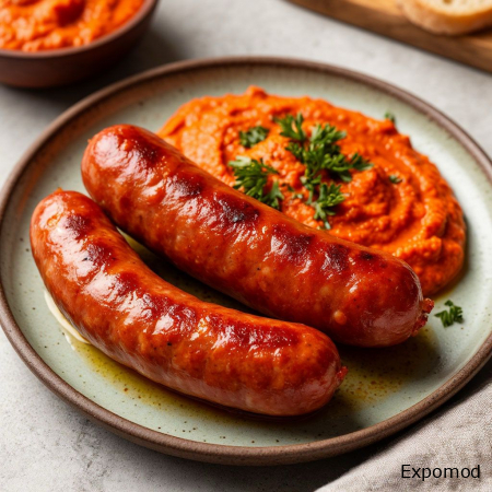 Колбаски чоризо на гриле с соусом ромеско: темперамент Испании на тарелке Колбаски чоризо на гриле с соусом ромеско — это блюдо с ярким южным характером, в котором воплощены традиции испанской кухни и любовь к насыщенным вкусам. Оно ассоциируется с солнцем, открытым огнём и неспешными гастрономическими удовольствиями, где еда становится важной частью общения и атмосферы. Такое сочетание идеально подходит для ресторанного меню, добавляя ему выразительность и средиземноморский колорит. Основой блюда являются колбаски чоризо — культовый продукт испанской гастрономии. Их отличает насыщенный вкус, плотная текстура и характерная пряность, достигаемая благодаря паприке и специям. При приготовлении на гриле чоризо раскрывают свой аромат особенно ярко: натуральные соки сохраняются внутри, а снаружи образуется аппетитная поджаренная корочка. Лёгкая дымная нотка усиливает вкус колбасок и делает его более глубоким и многослойным. Не менее важную роль играет соус ромеско, который родом из Каталонии. Этот соус готовится на основе запечённых перцев, орехов и оливкового масла, что придаёт ему насыщенную текстуру и сложный вкус. В ромеско сочетаются сладость овощей, лёгкая кислинка и ореховые оттенки, благодаря чему он прекрасно балансирует пряность чоризо. Соус добавляет блюду мягкость и гармонию, смягчая яркие вкусовые акценты колбасок. Контраст вкусов и текстур делает это блюдо особенно выразительным. Горячие, сочные колбаски в сочетании с бархатистым соусом создают насыщенное гастрономическое впечатление. Каждый элемент дополняет другой, не перетягивая внимание на себя, а формируя цельную и сбалансированную композицию. Подача колбасок чоризо на гриле с соусом ромеско обычно отличается простотой и акцентом на натуральность. Колбаски сервируют горячими, дополняя соусом и иногда свежей зеленью или овощами. Такая подача подчёркивает характер блюда и делает его понятным и привлекательным для гостей, ценящих честную и насыщенную кухню. Колбаски чоризо на гриле с соусом ромеско — это пример того, как традиционные рецепты могут звучать современно и актуально. Блюдо объединяет в себе пряность, дымный аромат и мягкую глубину соуса, создавая яркий вкус и атмосферу испанского темперамента. Оно станет отличным выбором для тех, кто любит насыщенные гастрономические впечатления и стремится открыть для себя богатство средиземноморской кухни. _______________________________________________________________________________________________________________ Grilled Chorizo Sausages with Romesco Sauce: The Temperament of Spain on a Plate Grilled chorizo sausages with romesco sauce are a dish with a vivid southern character, embodying the traditions of Spanish cuisine and a passion for bold flavors. It evokes images of sunshine, open fire, and leisurely gastronomic pleasures, where food becomes an essential part of social gatherings and atmosphere. This combination fits perfectly into a restaurant menu, adding expressiveness and Mediterranean charm. The foundation of the dish is chorizo — an iconic product of Spanish gastronomy. These sausages are known for their rich flavor, firm texture, and distinctive spiciness achieved through paprika and carefully selected spices. When grilled, chorizo reveals its aroma especially vividly: natural juices are sealed inside, while an appetizing charred crust forms on the outside. A subtle smoky note enhances the sausages’ flavor, making it deeper and more complex. Romesco sauce plays an equally important role in the dish and originates from Catalonia. This sauce is made from roasted peppers, nuts, and olive oil, giving it a rich texture and layered taste. Romesco combines vegetable sweetness, light acidity, and nutty undertones, which perfectly balance the spiciness of chorizo. The sauce adds softness and harmony, smoothing out the bold flavor accents of the sausages. The contrast of flavors and textures makes this dish especially expressive. Hot, juicy sausages paired with a velvety sauce create an intense gastronomic experi