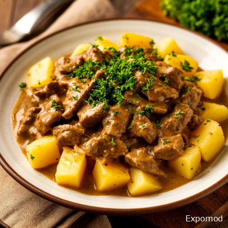 Бефстроганов из говядины с картофелем: классика, проверенная временем Бефстроганов из говядины с картофелем — это одно из тех блюд, которое сочетает в себе сытность, насыщенный вкус и уютную домашнюю атмосферу. Родившись в русской кухне XIX века, оно быстро завоевало популярность во многих странах мира, став символом гармоничного сочетания мягкого мяса и нежного гарнира. Сегодня бефстроганов с картофелем ценят за его универсальность: он подходит и для семейного ужина, и для торжественного обеда в ресторане. Главным ингредиентом блюда является говядина. Для бефстроганов выбирают мясо с мягкой текстурой, обычно это вырезка или тонкие куски из другой нежирной части туши. Мясо нарезают полосками, чтобы оно быстро прожарилось и сохранило сочность. Классическая технология требует предварительной обжарки на сильном огне до лёгкой золотистой корочки, что позволяет «запечатать» сок внутри и подчеркнуть естественный вкус говядины. Картофель выступает в качестве идеального гарнира к бефстроганову. Чаще всего используют молодой картофель, отварной или запечённый, который дополняет мягкость мяса и насыщенный сливочный соус. Картофель можно приготовить пюре или нарезать дольками, подчеркивая текстурный контраст с мясом. Он не только насыщает блюдо, но и придаёт ему традиционный уютный вкус, который знаком каждому с детства. Соус — важнейший элемент бефстроганова. Классический рецепт включает сливки или сметану, слегка обжаренный лук и пряности. Соус обволакивает мясо, создавая нежный кремовый вкус и делая каждый кусочек особенно сочным. В некоторых рецептах добавляют грибы или горчицу, чтобы подчеркнуть аромат и придать блюду дополнительную глубину. Именно сочетание мясной текстуры и насыщенного соуса делает бефстроганов блюдом, которое хочется повторять снова и снова. Подача бефстроганова с картофелем требует внимания к деталям. Мясо с соусом выкладывают на тарелку вместе с картофельным гарниром, украшая свежей зеленью или лёгкой пряной ноткой. Такой способ подачи делает блюдо эстетически привлекательным, подчёркивает его сытность и изысканность. В ресторане можно добавить к нему лёгкий овощной гарнир или хрустящие тосты, что создаёт полноценное гастрономическое впечатление. Бефстроганов из говядины с картофелем — это классика, которая остаётся актуальной и любимой на протяжении десятилетий. Он сочетает мягкое мясо, кремовый соус и нежный картофель, создавая идеальный баланс вкуса и текстуры. Это блюдо подходит для любой трапезы: от семейного ужина до праздничного обеда, радуя своим ароматом, насыщенностью и уютной атмосферой. Каждый кусочек бефстроганова — это гармония вкуса, традиции и гастрономического удовольствия, которое невозможно забыть. ____________________________________________________________________________________________________________ Beef Stroganoff with Potatoes: A Timeless Classic Beef Stroganoff with potatoes is one of those dishes that combines heartiness, rich flavor, and a cozy, homely feel. Originating in 19th-century Russian cuisine, it quickly gained popularity worldwide, becoming a symbol of the harmonious pairing of tender meat and a creamy side. Today, beef Stroganoff with potatoes is appreciated for its versatility: it is perfect for a family dinner as well as a festive restaurant meal. The main ingredient of the dish is beef. For Stroganoff, tender cuts of meat are chosen, usually tenderloin or other lean sections of the carcass. The beef is sliced into strips so that it cooks quickly while retaining juiciness. The classic technique involves briefly searing the meat over high heat to form a light golden crust, which seals in the juices and highlights the natural flavor of the beef. Potatoes serve as the perfect accompaniment to beef Stroganoff.