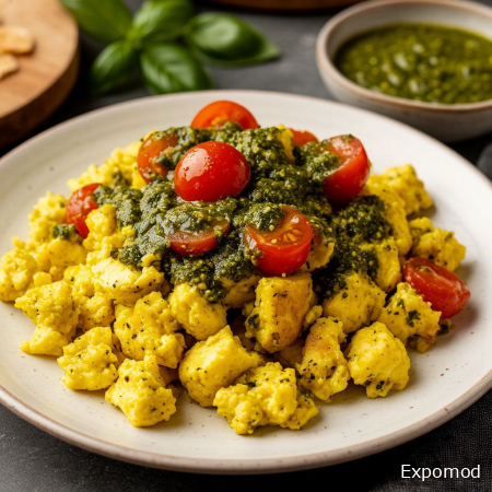 Скрембл с соусом песто: утреннее наслаждение и гармония вкусов Скрембл с соусом песто — это современный вариант традиционного завтрака, который сочетает нежность яиц, насыщенность зелёного соуса и аромат свежих трав. Такое блюдо идеально подходит для лёгкого, но питательного завтрака, а также может стать ярким акцентом на бранче или лёгком обеде. Гармоничное сочетание текстур и вкусов делает скрембл с песто не только сытным, но и по-настоящему изысканным кулинарным опытом. Основой блюда являются яйца. Для идеального скрембла используют свежие яйца, которые аккуратно взбивают перед приготовлением. Процесс взбивания обеспечивает равномерное распределение белка и желтка, что придаёт блюду нежную, бархатистую текстуру. Яйца готовят на медленном огне с добавлением небольшого количества масла или сливок, чтобы сохранить мягкость и лёгкость. Правильная техника приготовления позволяет избежать сухости и пережаривания, что делает скрембл особенно нежным и воздушным. Соус песто придаёт блюду неповторимый аромат и насыщенный вкус. Классический песто готовят из свежего базилика, оливкового масла, кедровых орехов, чеснока и сыра пармезан. Его зелёный цвет и пряный аромат создают контраст с мягкой текстурой скрембла, делая блюдо более ярким и выразительным. Песто можно добавлять непосредственно в яйца во время готовки или использовать как топпинг уже на готовом скрембле, сохраняя свежесть и аромат трав. Для полноты вкуса в скрембл часто добавляют свежие овощи: помидоры черри, шпинат, болгарский перец или зелёный лук. Эти ингредиенты делают блюдо более сытным и красочным, а также добавляют полезные витамины и минералы. Иногда используют лёгкий сыр, например моцареллу или фету, чтобы усилить кремовость и текстурное разнообразие блюда. Каждая порция скрембла превращается в гармоничное сочетание нежного яйца, ароматного песто и свежих овощей. Подача скрембла с соусом песто имеет большое значение для эстетики блюда. Его выкладывают на тарелку аккуратно, иногда украшая свежей зеленью, хрустящим тостом или хлебом на закваске. Для дополнительного акцента можно добавить немного оливкового масла или небольшую дольку лимона, чтобы подчеркнуть аромат песто и сделать вкус более свежим. Такая подача превращает обычный завтрак в изысканное гастрономическое удовольствие. Скрембл с соусом песто — это пример того, как простые ингредиенты могут создать утончённое и насыщенное блюдо. Он сочетает нежность яиц, пряный аромат зелёного соуса и свежесть овощей, создавая гармонию вкусов и текстур. Этот завтрак подходит для тех, кто ценит лёгкость, пользу и вкус, не жертвуя при этом эстетикой и гастрономическим удовольствием. Каждая порция скрембла с песто дарит чувство комфорта, свежести и бодрости, делая утро особенно приятным и вкусным. _________________________________________________________________________________________________________________ Scrambled Eggs with Pesto: Morning Delight and Flavor Harmony Scrambled eggs with pesto is a modern twist on a classic breakfast, combining the tenderness of eggs, the richness of green sauce, and the aroma of fresh herbs. This dish is perfect for a light yet nutritious breakfast and can also serve as a highlight for brunch or a light lunch. The harmonious combination of textures and flavors makes scrambled eggs with pesto not only satisfying but also a truly refined culinary experience. The base of the dish is eggs. For a perfect scramble, fresh eggs are carefully beaten before cooking. Beating ensures even distribution of the yolk and white, giving the dish a tender, velvety texture. Eggs are cooked over low heat with a small amount of butter or cream to maintain softness and lightness. Proper cooking techniqu