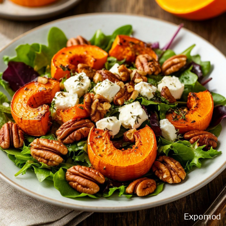 Салат с запечённой тыквой, орехами и козьим сыром — это идеальный пример блюда, которое сочетает в себе полезные ингредиенты, насыщенный вкус и визуальную привлекательность. Он подходит для лёгкого обеда, ужина или праздничного стола, когда хочется чего-то необычного, но при этом питательного и полезного. Такой салат не только радует вкус, но и дарит организму важные микроэлементы, витамины и полезные жиры. Главный компонент блюда — тыква, запечённая до мягкости. При запекании тыква сохраняет сладкий, насыщенный вкус и аромат, становясь мягкой и нежной. Она богата бета-каротином, клетчаткой и витамином C, что делает салат не только вкусным, но и полезным для зрения, иммунитета и пищеварения. Для запекания тыкву нарезают небольшими кубиками, слегка сбрызгивают оливковым маслом и приправляют щепоткой соли и перца. При этом важно не перегреть овощ, чтобы сохранить его сладость и текстуру. Орехи в салате создают хрустящую текстурную ноту и добавляют полезные жиры, которые поддерживают работу сердца и сосудов. Чаще всего используются грецкие орехи, миндаль или фундук, которые слегка обжаривают перед добавлением, чтобы усилить аромат и вкус. Орехи отлично сочетаются с мягкой тыквой, создавая контраст текстур и насыщенный вкус блюда. Козий сыр придаёт салату кремовость и мягкую солоноватость. Его сливочная текстура гармонично сочетается с нежной тыквой и хрустящими орехами, а вкус становится более многослойным. Козий сыр богат кальцием и белком, что делает блюдо ещё более питательным и полезным для костей и мышц. Для заправки салата используют минималистичный, но выразительный вариант: оливковое масло, бальзамический уксус или лимонный сок и немного мёда для мягкой сладости. Такая заправка подчёркивает естественные вкусы ингредиентов и делает блюдо сбалансированным и лёгким. Свежие травы, такие как руккола или петрушка, добавляют зелёный цвет, свежесть и аромат. Главное достоинство салата с запечённой тыквой, орехами и козьим сыром — универсальность. Он подходит для повседневного меню, для здорового перекуса и для праздничного стола. Блюдо легко адаптируется: можно менять виды орехов, добавлять семена или сухофрукты, экспериментировать с заправкой, но при этом салат остаётся лёгким, вкусным и питательным. Салат с запечённой тыквой, орехами и козьим сыром демонстрирует, как простые натуральные ингредиенты могут создавать сложное, сбалансированное и эстетичное блюдо. Он помогает поддерживать здоровье, насыщает витаминами и минералами, формирует привычку осознанного питания и дарит радость от каждого приёма пищи, превращая обед или ужин в настоящее гастрономическое удовольствие. ____________________________________________________________________________________________________________________ Salad with roasted pumpkin, nuts, and goat cheese is a perfect example of a dish that combines healthy ingredients, rich flavors, and visual appeal. It is suitable for a light lunch, dinner, or a festive table when you want something unusual yet nutritious and beneficial. This salad not only delights the taste buds but also provides the body with essential micronutrients, vitamins, and healthy fats. The main component of the dish is pumpkin, roasted until tender. Roasting preserves its naturally sweet, rich flavor and aroma, making it soft and delicate. Pumpkin is rich in beta-carotene, fiber, and vitamin C, making the salad not only tasty but also beneficial for vision, immunity, and digestion. For roasting, the pumpkin is cut into small cubes, lightly drizzled with olive oil, and seasoned with a pinch of salt and pepper. It is important not to overcook the vegetable to maintain its sweetness and texture. Nuts add a crunchy texture and supply healthy fats that support heart and vascular health. Walnuts, almonds, or hazelnuts are commonly used and are lightly