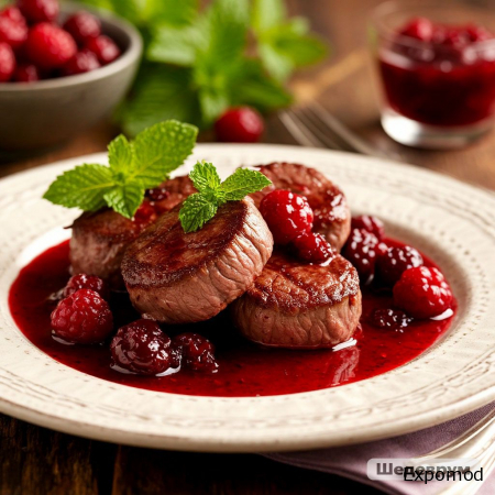 Медальоны из телятины с ягодным соусом: гармония нежности и вкуса Медальоны из телятины с ягодным соусом — это изысканное блюдо, которое сочетает в себе нежность мяса, насыщенный вкус ягод и эстетическую подачу. Оно идеально подходит для ресторанного меню, праздничного ужина или особенного случая, когда хочется удивить гостей и создать атмосферу гастрономического наслаждения. Такой дуэт телятины и ягодного соуса превращает простое блюдо в кулинарное произведение, где каждый элемент тщательно продуман для максимального вкусового эффекта. Особенности телятины и её преимущества Телятина — мясо, которое ценится за мягкость, тонкий вкус и лёгкую текстуру. Оно обладает низкой калорийностью и высоким содержанием белка, что делает его полезным и питательным продуктом. Медальоны — это кусочки из филе, которые сохраняют сочность и нежность даже при быстром обжаривании на сковороде или запекании. Правильная термическая обработка позволяет подчеркнуть натуральный вкус мяса, не перегружая его специями и добавками. Ягодный соус: акцент вкуса и аромата Ягодный соус — это элемент, который превращает телятину в утончённое блюдо. Обычно используют смесь ягод — чернику, малину, клюкву или ежевику, иногда добавляя немного вина, мёда или апельсинового сока для баланса сладости и кислинки. Соус подчёркивает нежность телятины и создаёт контраст, который делает каждый кусочек насыщенным и многослойным по вкусу. При приготовлении соуса важно добиться гармонии между сладостью ягод и лёгкой кислинкой, чтобы вкус телятины оставался главным акцентом, а соус лишь усиливал общее впечатление. Такой подход позволяет создавать блюдо, которое одновременно сытное, лёгкое и элегантное. Эстетика подачи Медальоны из телятины с ягодным соусом выглядят впечатляюще благодаря продуманной подаче. На тарелке мясо выкладывают аккуратно, поверх поливают ягодным соусом и украшают свежими ягодами или зеленью. Контраст тёплого коричневого цвета телятины и яркого ягодного соуса создаёт эффект визуального наслаждения. Особое внимание уделяется текстуре: медальоны должны быть сочными, соус — слегка густым, а гарнир (например, овощи на пару, картофельное пюре или микс салата) — дополнять вкус, не отвлекая от основного блюда. Такая подача усиливает впечатление от еды, превращая трапезу в эстетическое удовольствие. Медальоны из телятины с ягодным соусом для особых случаев Это блюдо идеально подходит для романтического ужина, праздничного обеда или изысканного ресторанного меню. Оно сочетает питательность, нежность и насыщенность вкуса, создавая гармонию, которая впечатляет гостей с первого взгляда и первого укуса. Медальоны из телятины с ягодным соусом доказывают, что даже простое сочетание мяса и фруктового акцента может стать уникальным гастрономическим опытом, способным подарить наслаждение вкусом, ароматом и эстетикой. Каждая порция превращается в маленький праздник для гурмана, где гармония ингредиентов и авторская подача делают блюдо незабываемым. _______________________________________________________________________________________________________________ Veal Medallions with Berry Sauce: A Harmony of Tenderness and Flavor Veal medallions with berry sauce are a refined dish that combines the tenderness of meat, the rich taste of berries, and elegant presentation. It is perfect for a restaurant menu, a festive dinner, or a special occasion when you want to impress guests and create an atmosphere of gastronomic delight. This combination of veal and berry sauce transforms a simple dis