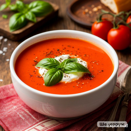 Томатный крем-суп с базиликом и страчателлой: нежность и аромат в каждой ложке Томатный крем-суп с базиликом и страчателлой — это изысканное блюдо, которое сочетает в себе насыщенный вкус свежих томатов, аромат пряного базилика и нежную текстуру итальянского сыра страчателла. Он идеально подходит для лёгкого обеда, романтического ужина или как авторская закуска в ресторане, где ценят баланс вкуса, текстуры и эстетическую подачу. Каждая ложка супа дарит гастрономическое удовольствие и создаёт ощущение домашнего уюта с ноткой итальянской элегантности. Концепция и идея блюда Основная идея томатного крем-супа — объединить простые ингредиенты в блюдо, которое будет одновременно лёгким, питательным и насыщенным вкусом. Томатная база создаёт яркий и насыщенный вкус, а кремовая текстура делает суп бархатистым и мягким. Базилик добавляет свежесть и аромат, подчёркивая естественную сладость томатов, а страчателла придаёт сливочную нежность и изысканность. Суп сочетает в себе простоту ингредиентов с авторской подачей: каждая порция выглядит эстетично, а вкусовые сочетания создают многослойное впечатление, которое запоминается с первого укуса. Это блюдо показывает, как классическая кухня может быть лёгкой, современной и изысканной одновременно. Состав и вкусовые особенности Главные ингредиенты супа: спелые томаты, свежий базилик, оливковое масло, лук и чеснок для глубины вкуса, а также страчателла для кремовой текстуры. Томаты можно запекать или тушить, чтобы подчеркнуть их сладость и добавить насыщенности. Суп отличается гармонией вкусов: естественная сладость томатов сочетается с пряностью базилика и лёгкой солоноватостью страчателлы. Кремовая текстура создаёт мягкость и бархатистость, а свежие зелёные листья базилика добавляют аромат и визуальную привлекательность. Такое сочетание превращает простой суп в авторское блюдо, которое радует и вкусом, и эстетикой. Эстетика подачи Подача томатного крем-супа важна для полного восприятия блюда. Страчателлу аккуратно выкладывают в центр супа, а сверху украшают листьями свежего базилика или каплей оливкового масла. Контраст ярко-красного супа, белого сыра и зелёного базилика создаёт визуально привлекательное и аппетитное блюдо. Важно, чтобы суп был подан горячим, а страчателла сохраняла мягкость и кремовую текстуру. Такой подход к подаче усиливает гастрономическое впечатление и создаёт ощущение заботы о каждом госте. Томатный крем-суп с базиликом и страчателлой: сочетание пользы и вкуса Это блюдо не только вкусное, но и полезное: томаты богаты антиоксидантами и витаминами, базилик содержит микроэлементы и ароматические масла, а страчателла добавляет белок и мягкую сливочность. Суп лёгкий, питательный и при этом изысканный, что делает его идеальным выбором для ресторанного меню или домашнего ужина. Томатный крем-суп с базиликом и страчателлой доказывает, что даже простое сочетание ингредиентов может стать произведением кулинарного искусства. Каждый ингредиент дополняет другой, создавая гармонию вкуса, текстуры и эстетики, превращая обычный суп в незабываемое гастрономическое впечатление. __________________________________________________________________________________________________________________ Tomato Cream Soup with Basil and Stracciatella: Tenderness and Aroma in Every Spoon Tomato cream soup with basil and stracciatella is an exquisite dish that combines the rich flavor of fresh tomatoes, the aro