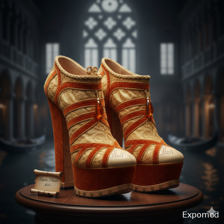 The "Cloud" Chopines are a breathtaking reconstruction of the towering platform shoes that defined the silhouette of high-status Venetian noblewomen and cortigiane oneste during the 16th century. In the watery streets of the Serenissima, these shoes served a dual purpose: practically protecting expensive silk gowns from the damp pavement, and symbolically elevating the wearer above the common populace. The height of the chopine was a direct indicator of social standing—the higher the platform, the more prestigious the lady. Our "Cloud" model features a staggering 20-centimeter platform, hand-carved from lightweight yet durable cork and encased in a structural frame of linden wood. The entire platform is upholstered in a sumptuous burnt-orange velvet, meticulously decorated with "slashing" patterns that reveal an underlayer of shimmering gold tissue. The toe cap is crafted from supple cream-colored kid leather, intricately punched with delicate geometric patterns known as traforato. The true luxury lies in the ornamentation. The base of the platform is studded with tiny gilded brass nails in a floral motif, and a single, teardrop-shaped Baltic amber pendant hangs from the front of each shoe, swaying gracefully with every step. These shoes were famously difficult to walk in, often requiring the wearer to lean on the shoulders of two attendants—a practice that only further emphasized her wealth and leisure. At Legacy Threads, we have engineered these chopines with a modern focus on internal balance, ensuring that while they maintain their historical height, they offer more stability than their 16th-century predecessors. They are a must-have for collectors of avant-garde historical fashion, theatrical performers, and those who wish to embody the theatrical, gravity-defying elegance of the Venetian Republic. ________________________________________________________________________________________________________________________ Венецианские чопины «Облако» — это захватывающая дух реконструкция высоких туфель на платформе, которые определяли силуэт знатных венецианских дам и «честных куртизанок» (cortigiane oneste) в XVI веке. На залитых водой улицах Светлейшей республики эта обувь служила двум целям: практической — защите дорогих шелковых платьев от сырой мостовой, и символической — возвышению владелицы над простым народом. Высота чопинов была прямым индикатором социального статуса: чем выше платформа, тем престижнее положение дамы. Наша модель «Облако» оснащена внушительной 20-сантиметровой платформой, вырезанной вручную из легкой, но прочной пробки и заключенной в каркас из липы. Вся платформа обтянута роскошным бархатом цвета жженого оранжевого, тщательно украшенным «разрезами», сквозь которые проглядывает мерцающая золотая ткань. Носок туфель выполнен из мягкой козлиной кожи кремового цвета с изящной геометрической перфорацией, известной как traforato. Истинная роскошь кроется в деталях. Основание платформы усыпано крошечными позолоченными латунными гвоздиками, образующими цветочный мотив, а к передней части каждой туфли прикреплена подвеска из каплевидного балтийского янтаря, грациозно покачивающаяся при каждом шаге. Известно, что в такой обуви было крайне трудно ходить — часто даме приходилось опираться на плечи двух слуг, что лишь дополнительно подчеркивало её богатство и праздный образ жизни. В Legacy Threads мы спроектировали эти чопины с учетом современного баланса, гарантируя, что при сохранении исторической высоты они обеспечивают большую устойчивость, чем их предшественники XVI века. Это обязательный предмет для коллекционеров авангардной исторической моды, театральных артистов и тех, кто желает воплотить театральную, бросающую вызов гравитации элегантность Венецианской республики. ___________________________________________________________________________________________________________________________ expomod.kz