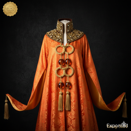 The "Sunset Sun" Opashen is a breathtaking tribute to the elegance of 16th-century Russian noblewomen. The opashen was a prestigious overgarment, traditionally worn loosely over the shoulders, with incredibly long, narrow sleeves that were left to hang down the back, symbolizing a life free from manual labor and a high social standing. This exquisite piece is tailored from heavy, flame-orange silk damask, featuring a subtle "honeycomb" weave that catches the light like the golden hour of a Russian autumn. The collarless neckline is framed by a "vorot"—a stiff, detachable collar made of deep brown velvet, intricately embroidered with golden vines and tiny river pearls. The true splendor of the "Sunset Sun" lies in its fastenings. The front is adorned with a row of "vortsy"—massive, decorative button-loops crafted from twisted gold cords. Each loop is anchored by a large, polished Baltic amber bead, chosen for its fiery inclusions that mimic the glow of a dying hearth. The long, hanging sleeves are lined with pale saffron satin and finished with gold tassels that sway with every movement. This garment is a masterclass in architectural softness, designed to envelop the wearer in a halo of warmth and undeniable authority. At Legacy Threads, we recreate this historical silhouette for those who appreciate the quiet power of tradition. Keywords: Russian Opashen, 16th century Russian dress, Tsaritsa fashion, Amber bead fastenings, Silk damask, Gold thread embroidery, Historical embroidery, Traditional Russian silhouette, Luxury folk-couture, Noblewoman attire ______________________________________________________________________________________________________________________________ Женский опашень «Закатное солнце» — это величественный оммаж элегантности русских знатных женщин XVI века. Опашень считался престижной верхней одеждой, которую традиционно носили внакидку на плечах. Его невероятно длинные и узкие рукава оставляли свободно свисающими вдоль спины, что подчеркивало высокий социальный статус владелицы и ее свободу от любого физического труда. Это изысканное изделие сшито из тяжелого шелкового дамаста пламенно-оранжевого цвета с едва уловимым плетением «соты», которое переливается на свету, словно предзакатное солнце русской осени. Вырез без воротника обрамлен «воротом» — жестким съемным ожерельем из темно-коричневого бархата, густо расшитым золотыми лозами и мелким речным жемчугом. Истинное великолепие «Закатного солнца» кроется в его застежках. Передняя часть украшена рядом «ворцов» — массивных декоративных петель, сплетенных из золотых шнуров. Каждую петлю венчает крупная полированная бусина балтийского янтаря, отобранная за свои огненные включения, напоминающие сияние угасающего очага. Длинные откидные рукава подбиты нежным шафрановым атласом и завершаются золотыми кистями, которые покачиваются при каждом движении. Этот наряд — настоящий мастер-класс архитектурной мягкости, созданный, чтобы окутать обладательницу ореолом тепла и неоспоримого авторитета. В Legacy Threads мы воссоздаем этот исторический силуэт для тех, кто ценит тихую мощь традиций. Ключевые слова: русский опашень, женская одежда XVI века, мода цариц, янтарные пуговицы, шелковый дамаст, золотое шитье, историческая вышивка, традиционный русский силуэт, роскошный фолк-кутюр, наряд боярыни. ____________________________________________________________________________________________________________________________________ expomod.kz