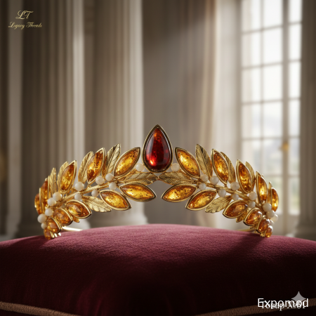 The "Josephine's Laurels" is a regal tiara designed in the classic Empire style, echoing the neoclassical revival of the Napoleonic court. During this era, jewelry was meant to look like excavated treasures from ancient Pompeii or Rome, emphasizing symmetry and botanical motifs. The tiara is handcrafted from polished 18k yellow gold, featuring a symmetrical arrangement of laurel leaves—the ancient symbol of victory and imperial status. The structure is designed to sit low on the forehead, framing the face in the style of a Roman empress. The "Legacy Threads" signature replaces traditional diamonds with a warm, solar palette of Baltic amber. Each laurel leaf is centered with a marquise-cut "Honey" amber gemstone, radiating a golden glow. The "berries" of the wreath are represented by perfectly spherical beads of "Royal White" amber, providing a stark, elegant contrast to the gold. At the very center of the diadem sits a large, pear-shaped "Cherry" amber drop, suspended within a gold frame to catch the light with every movement. This tiara is a statement of power and timeless beauty, blending the sun-drenched history of the Baltic with the imperial grandeur of Paris. Keywords: Empire style tiara, Neoclassical diadem, Napoleonic jewelry, Josephine Bonaparte accessory, Amber laurel wreath, Honey amber gemstones, Royal White amber beads, 18k gold headpiece, Regency era luxury. ______________________________________________________________________________________________________________________________________ Тиара «Лавры Жозефины» — это величественная диадема, выполненная в классическом стиле ампир и отражающая неоклассическое возрождение при наполеоновском дворе. В ту эпоху ювелирные украшения должны были напоминать сокровища, найденные при раскопках древних Помпей или Рима, с акцентом на симметрию и ботанические мотивы. Тиара изготовлена вручную из полированного 18-каратного желтого золота и представляет собой симметричную композицию из лавровых листьев — античного символа победы и имперского статуса. Конструкция позволяет диадеме располагаться низко на лбу, обрамляя лицо в стиле римской императрицы. Фирменный стиль Legacy Threads заменяет традиционные бриллианты теплой «солнечной» палитрой балтийского янтаря. В центре каждого лаврового листа закреплен драгоценный камень из медового янтаря огранки «маркиз», излучающий золотистое сияние. «Ягоды» венка представлены идеально сферическими бусинами из янтаря сорта «Королевский белый», создающими строгий и элегантный контраст с золотом. В самом центре диадемы расположена крупная каплевидная подвеска из «вишневого» янтаря, закрепленная в золотой оправе так, чтобы улавливать свет при каждом движении. Эта тиара — символ власти и вневременной красоты, объединяющий пронизанную солнцем историю Балтики с имперским величием Парижа. Ключевые слова: тиара в стиле ампир, неоклассическая диадема, наполеоновские украшения, аксессуар Жозефины Богарне, лавровый венец из янтаря, медовый янтарь, бусины из королевского белого янтаря, золотое украшение на голову, роскошь эпохи Регентства. ____________________________________________________________________________________________________________________________________ expomod.kz