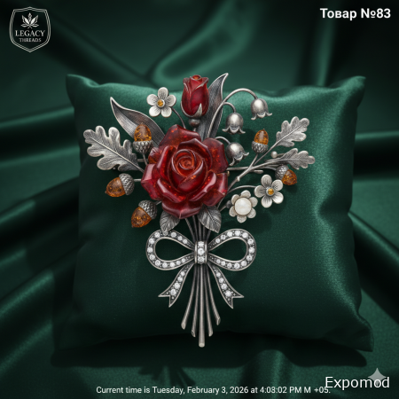 The "Victorian Secret" Posy Brooch is a masterful example of mid-19th century romantic jewelry, specifically designed to showcase the "Language of Flowers" (Floriography). During the early Victorian era, bouquets were used to send coded messages of love, friendship, or mourning. This brooch serves as a permanent, jeweled bouquet for a lady's bodice or shawl. The brooch is delicately cast in "antique-oxidized" sterling silver, fashioned into a cluster of symbolic flora: a central moss rose (confessions of love), sprigs of lily-of-the-valley (return of happiness), and tiny ivy leaves (fidelity). The silver is finely chased to provide a lifelike, organic texture. The "Legacy Threads" signature brings the warm glow of Baltic amber to this botanical treasure. The central rose is meticulously hand-carved from a single piece of deep "Cherry" amber, its translucent petals layered to capture the light. The tiny bells of the lily-of-the-valley are represented by droplets of "Royal White" amber, while small buds of "Honey" amber are nestled among the silver leaves. At the base, a silver ribbon bow is pavé-set with "Ice" amber micro-crystals, adding a subtle, diamond-like shimmer. This brooch is more than an ornament; it is a wearable poem, rich in sentiment and craftsmanship. Keywords: Victorian posy brooch, 1850s jewelry, Floriography, Language of flowers jewelry, Cherry amber rose, Royal White amber lily, Honey amber buds, Oxidized silver brooch, Romantic era accessories. ____________________________________________________________________________________________________________________________________________ Брошь-букет «Секрет Виктории» — это мастерский образец романтического ювелирного искусства середины XIX века, специально созданный для демонстрации «языка цветов» (флориографии). В раннюю викторианскую эпоху букеты использовались для передачи зашифрованных посланий о любви, дружбе или трауре. Эта брошь служит постоянным драгоценным букетом для лифа или шали дамы. Брошь изящно отлита из «антикварного оксидированного» серебра в виде скопления символической флоры: центральной моховой розы (признание в любви), веточек ландыша (возвращение счастья) и крошечных листьев плюща (верность). Серебро тонко прочеканено для придания реалистичной органической текстуры. Фирменный стиль Legacy Threads придает этому ботаническому сокровищу теплое сияние балтийского янтаря. Центральная роза тщательно вырезана вручную из цельного куска глубокого «вишневого» янтаря, ее полупрозрачные лепестки расположены слоями, чтобы улавливать свет. Крошечные колокольчики ландыша представлены каплями «королевского белого» янтаря, а маленькие бутоны «медового» янтаря уютно устроились среди серебряных листьев. У основания серебряный бант из ленты украшен микрокристаллами «ледяного» янтаря в технике паве, что придает броши тонкое, бриллиантовое мерцание. Эта брошь — больше чем украшение; это поэма, которую можно носить, богатая чувствами и мастерством. Ключевые слова: викторианская брошь-букет, ювелирные изделия 1850-х годов, флориография, украшения на языке цветов, роза из вишневого янтаря, ландыш из белого янтаря, бутоны из медового янтаря, брошь из оксидированного серебра, аксессуары эпохи романтизма ____________________________________________________________________________________________________________________________________________ expomod.kz