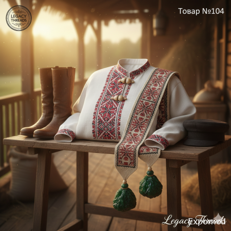 The "Fairground Dandy" Set is a robust and handsome tribute to the masculinity of the Russian countryside. At its heart is the "Kosovorotka"—a traditional shirt with a side-slit collar, designed to keep the wearer's neck warm and prevent a chest cross from falling out during physical labor or festivities. The shirt is tailored from high-quality, bleached "snow-white" heavy linen. The collar, sleeve cuffs, and the signature side-fastening placket are densely decorated with traditional red and black "cross-stitch" embroidery, featuring geometric patterns that symbolize protection and strength. Accompanying the shirt is a long, hand-woven "Oat-hued" wool sash (poyas), finished with heavy tassels and woven with protective solar wheels. The "Legacy Threads" signature adds a layer of rugged luxury with a uniquely Russian touch. The buttons of the side collar are replaced with sturdy, hand-shaped "Opaque Bone" Baltic Amber toggles, polished to a satin finish that feels warm against the skin. The wool sash is further embellished: the tassels are weighted with large, raw "Forest Green" amber beads, which look like frozen drops of pine resin. This ensemble captures the vibrant, earthy pride of a man who is the master of his land. Keywords: Russian Kosovorotka, 19th-century peasant shirt, Hand-loomed linen, Cross-stitch embroidery, Traditional wool sash, Opaque Baltic Amber buttons, Forest Green amber beads, Slavic folk menswear. Price: $15,500 Этап 2: Перевод на русский язык Комплект «Ярмарочный Щеголь» — это статная и мужественная дань уважения русской деревне. В его основе лежит «косоворотка» — традиционная рубаха с разрезом сбоку, дизайн которой позволял сохранять тепло и не давал нательному крестику выпадать во время работы или молодецких забав. Рубаха сшита из высококачественного отбеленного «белоснежного» плотного льна. Воротник, манжеты рукавов и фирменная планка с боковой застежкой густо украшены традиционной красно-черной вышивкой «крестиком» с геометрическими узорами, символизирующими защиту и силу. В комплекте к рубахе идет длинный, сотканный вручную шерстяной кушак (пояс) цвета «овса», завершающийся тяжелыми кистями и украшенный ткаными солярными знаками. Фирменный стиль Legacy Threads добавляет слой суровой роскоши с истинно русским характером. Пуговицы на воротнике заменены прочными, выточенными вручную застежками из непрозрачного костяного янтаря, отполированными до сатинового блеска. Шерстяной пояс дополнительно декорирован: кисти утяжелены крупными необработанными бусинами «лесного зеленого» янтаря, похожими на застывшие капли сосновой смолы. Этот ансамбль воплощает живую, земную гордость мужчины — хозяина своей земли. Ключевые слова: русская косоворотка, крестьянская рубаха 19 века, лен ручной работы, вышивка крестом, традиционный шерстяной пояс, пуговицы из костяного янтаря, бусины из зеленого янтаря, славянская мужская мода ____________________________________________________________________________________________________________________________________________ expomod.kz