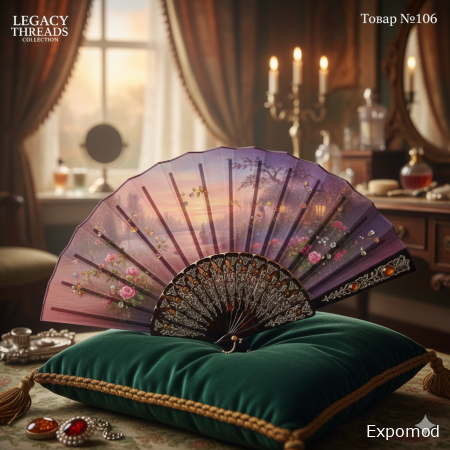 The "Twilight Enigma" Fan is a sophisticated accessory, a must-have for a discerning lady navigating the crowded ballrooms and intimate soirées of late Victorian London. More than just a cooling device, a fan was a tool of silent communication and an extension of a woman's elegance. This fan features a delicate, hand-painted leaf made from fine silk organza in a gradient of dusky rose to deep amethyst, mimicking the colors of a fading sunset. The painting depicts a subtle, misty English garden scene at twilight, with faint outlines of roses and ivy. The sticks (monture) are crafted from highly polished, dark "tortoiseshell" (faux tortoise for ethical reasons), intricately carved with filigree patterns. The "Legacy Threads" signature elevates this functional art piece to a jewel. Embedded within the silk organza painting are tiny, iridescent "Rainbow Flash" Baltic Amber chips, scattered like fireflies in the twilight garden. The guard sticks are adorned with small, perfectly cut "Cognac Gem" amber cabochons, set in delicate silver settings, adding a rich, warm glow. The pivot is a central "Red Cherry" amber cabochon, surrounded by tiny seed pearls, making the fan not just beautiful but also a conversation starter. Keywords: Late Victorian fan, Hand-painted silk organza, Tortoiseshell monture, Twilight garden scene, Rainbow Flash Baltic Amber, Cognac Gem amber, Red Cherry amber, Victorian ballroom accessory, Silent communication tool. ____________________________________________________________________________________________________________________________________________ Веер «Загадка Заката» — это изысканный аксессуар, незаменимый для утонченной дамы, посещающей переполненные бальные залы и интимные вечера позднего викторианского Лондона. Веер был не просто приспособлением для охлаждения; он был инструментом невербального общения и продолжением элегантности женщины. Этот веер имеет деликатный, расписанный вручную веерный лист из тонкой шелковой органзы с градиентом от приглушенно-розового до глубокого аметистового, имитирующего цвета угасающего заката. На картине изображена тонкая, туманная сцена английского сада в сумерках, с легкими очертаниями роз и плюща. Створки (монтаж) изготовлены из тщательно отполированного темного «черепахового панциря» (искусственного, по этическим соображениям), искусно вырезанного филигранным узором. Фирменный стиль Legacy Threads превращает это функциональное произведение искусства в драгоценность. В роспись на шелковой органзе встроены крошечные, переливающиеся янтарные чипы «Радужная Вспышка», разбросанные, как светлячки в сумеречном саду. Крайние створки украшены небольшими, идеально ограненными кабошонами янтаря «Коньячный Самоцвет», закрепленными в изящных серебряных оправах, что придает им богатый, теплый блеск. Шарнир веера — это центральный кабошон янтаря «Красная Вишня», окруженный крошечным жемчугом, что делает веер не только красивым, но и предметом для беседы. Ключевые слова: веер поздней Викторианской эпохи, шелковая органза ручной росписи, черепаховый монтаж, сумеречный сад, балтийский янтарь «Радужная Вспышка», коньячный янтарь, красный вишневый янтарь, викторианский бальный аксессуар, инструмент невербального общения ____________________________________________________________________________________________________________________________________________ expomod.kz