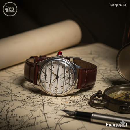 The "Honorable Second" Trench Watch is a faithful reconstruction of the early wristlets that revolutionized timekeeping during the Great War. This timepiece marks the moment the watch migrated from the pocket to the wrist, becoming an indispensable tool for coordinating tactical maneuvers under the cover of mist. The watch features a robust, sterling silver "cushion" case with integrated wire lugs. The dial is stark white enamel with oversized, luminous radium-style numerals (recreated with safe modern materials) and cathedral-shaped hands for maximum visibility in low light. A distinctive "shrapnel guard"—a protective silver grill—covers the crystal, protecting it from the rigors of the field. The strap is a wide, sturdy "Bund-style" band of dark, oil-tanned mahogany leather. The "Legacy Threads" signature elevates this instrument with a unique amber integration. The crown, used for winding and setting the time, is capped with a tiny, cabochon-cut "Blood Sun" Baltic Amber—a deep, fiery red stone that glows intensely against the silver. Additionally, the shrapnel guard's hinge is adorned with microscopic "Sandstorm" amber inlays, visible only upon close inspection. This watch isn't just a chronometer; it's a piece of history, wearable and resilient. Keywords: WWI Trench watch, 1910s officer timepiece, Sterling silver cushion case, Shrapnel guard, Cathedral hands, Blood Sun Baltic Amber, Military horology, Bund leather strap. ____________________________________________________________________________________________________________________________________________ Полевые часы офицера «Секунда Чести» — это верная реконструкция первых наручных приборов, совершивших революцию в хронометраже во время Великой войны. Эти часы отмечают момент, когда часы перекочевали из кармана на запястье, став незаменимым инструментом для координации тактических маневров под покровом тумана. Часы заключены в прочный серебряный корпус формы «подушка» с припаянными проволочными дужками. Циферблат выполнен из белоснежной эмали с крупными светящимися цифрами в стиле «радий» (воссозданными из безопасных современных материалов) и стрелками в форме «кафедральных соборов» для максимальной видимости при слабом освещении. Характерная «защита от шрапнели» — серебряная решетка — закрывает стекло, оберегая его от тягот полевой службы. Ремешок представляет собой широкую, надежную конструкцию типа «Bund» из темно-коричневой кожи махагони масляного дубления. Фирменный стиль Legacy Threads дополняет этот инструмент уникальной янтарной деталью. Заводная головка увенчана крошечным кабошоном балтийского янтаря «Кровавое солнце» — глубоким огненно-красным камнем, который интенсивно сияет на фоне серебра. Кроме того, шарнир защитной решетки украшен микроскопическими вставками янтаря «Песчаная буря», заметными только при ближайшем рассмотрении. Эти часы — не просто хронометр, это часть истории, пригодная для носки и невероятно долговечная. Ключевые слова: траншейные часы ПМВ, офицерские часы 1910-х, серебряный корпус подушка, защита от шрапнели, кафедральные стрелки, балтийский янтарь «Кровавое солнце», военная часовая история ____________________________________________________________________________________________________________________________________________ expomod.kz