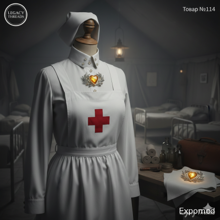 The "White Angel" uniform is a poignant tribute to the courage of the VAD (Voluntary Aid Detachment) nurses during the Great War. This garment represents a radical shift in fashion—moving away from restricted silhouettes to a design that allowed for swift, life-saving movement in military hospitals. The ensemble is made from crisp, heavy-duty "pure white" starched cotton, designed to withstand rigorous sanitization. It features a long-sleeved, high-necked dress with a detachable starched collar and a crisp apron (pinafore) with the iconic Red Cross prominently displayed. The "veil" or coif is of soft, breathable linen, designed to keep hair secure during long shifts. The "Legacy Threads" signature introduces a subtle, spiritual element through amber. The standard functional buttons are replaced with small, bead-like "Clear Sunlight" Baltic Amber—stones so transparent they seem like drops of water or solidified light, symbolizing hope and purity. Most significantly, the traditional nursing medal or brooch is replaced with a custom Art Nouveau pin: a silver branch of olive leaves holding a single, heart-shaped "Golden Nectar" amber, representing the healing touch and the warmth of human compassion amidst the chaos of war. Keywords: WWI Nurse uniform, VAD clothing 1910s, Red Cross apron, Starched cotton dress, Medical history fashion, Clear Sunlight amber, Healing talisman, Great War women's history. ____________________________________________________________________________________________________________________________________________ Облачение сестры милосердия «Белый Ангел» — это трогательная дань уважения мужеству медсестер-добровольцев времен Великой войны. Эта одежда представляет собой радикальный сдвиг в моде: отказ от сковывающих силуэтов в пользу дизайна, позволяющего совершать быстрые, спасающие жизнь движения в военных госпиталях. Ансамбль выполнен из плотного, идеально белого накрахмаленного хлопка, способного выдержать суровую дезинфекцию. Он состоит из платья с длинными рукавами и высоким воротником, дополненного съемным воротничком и белоснежным передником с культовым изображением Красного Креста. Головной убор (коаф) изготовлен из мягкого, дышащего льна, чтобы надежно фиксировать волосы во время долгих смен. Фирменный стиль Legacy Threads привносит в этот образ тонкий духовный элемент через янтарь. Стандартные функциональные пуговицы заменены на маленькие бусины балтийского янтаря «Чистый солнечный свет» — камни настолько прозрачные, что кажутся каплями воды или застывшим светом, символизируя надежду и чистоту. Самая значимая деталь — традиционная брошь медсестры заменена на авторскую булавку в стиле модерн: серебряную оливковую ветвь, удерживающую сердцевидный янтарь «Золотистый нектар», олицетворяющий исцеляющее прикосновение и тепло человеческого сострадания среди хаоса войны. Ключевые слова: униформа медсестры ПМВ, одежда VAD 1910-х, передник Красного Креста, накрахмаленный хлопок, история медицины в моде, янтарь «Чистый солнечный свет», талисман исцеления ____________________________________________________________________________________________________________________________________________ expomod.kz