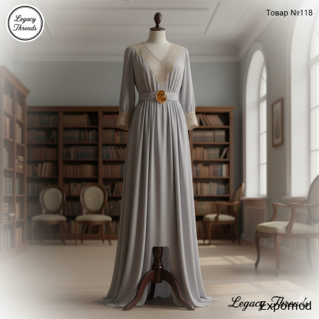 The "Voice of Freedom" gown reflects the evolving role of women in the tumultuous period of the February Revolution. Designed for intellectual gatherings, political discussions, and public appearances, this dress embodies a blend of traditional femininity and burgeoning social assertiveness. The gown is crafted from flowing "dove grey" georgette silk, known for its soft drape and subtle sheen. The silhouette is typical of the mid-1910s: a high, slightly cinched waist, a long, elegant skirt with gentle pleats, and a modest V-neckline adorned with fine "oatmeal" lace. Long, semi-fitted sleeves with delicate lace cuffs complete the sophisticated look. The "Legacy Threads" signature introduces elements of "Revolutionary Amber." The dress is fastened down the back with a row of small, spherical "Morning Mist" Baltic Amber buttons—a pale, almost white variety that evokes the dawn of a new era. Most strikingly, the waist sash is secured by a large, oval "Hope's Glow" amber buckle, polished to reveal golden threads and shimmering inclusions, symbolizing the aspirations and fragile optimism of a changing society. Keywords: February Revolution women's fashion, 1917 Russian style, Georgette silk dress, Dove grey gown, Lace trim, Morning Mist amber, Hope's Glow amber, Intellectual femininity, Historical elegance. Price: $36,000 Этап 2: Перевод на русский язык Платье «Голос Свободы» отражает меняющуюся роль женщин в бурный период Февральской революции. Созданное для интеллектуальных собраний, политических дискуссий и публичных выступлений, это платье воплощает смесь традиционной женственности и зарождающейся социальной напористости. Платье сшито из струящегося шелка жоржет «голубино-серый», известного своей мягкой драпировкой и легким блеском. Силуэт типичен для середины 1910-х годов: высокая, слегка зауженная талия, длинная элегантная юбка с мягкими складками и скромный V-образный вырез, украшенный тонким кружевом цвета «овсянки». Длинные, полуприлегающие рукава с деликатными кружевными манжетами завершают утонченный образ. Фирменный стиль Legacy Threads вводит элементы «Революционного янтаря». Платье застегивается на спине рядом маленьких сферических пуговиц из балтийского янтаря «Утренняя дымка» — бледного, почти белого сорта, который вызывает ассоциации с рассветом новой эры. Самым примечательным является то, что пояс на талии фиксируется большой овальной янтарной пряжкой «Сияние Надежды», отполированной так, чтобы выявить золотистые нити и мерцающие включения, символизирующие чаяния и хрупкий оптимизм меняющегося общества. Ключевые слова: женская мода Февральской революции, русский стиль 1917 года, платье из шелка жоржет, голубино-серый наряд, кружевная отделка, янтарь «Утренняя дымка», янтарь «Сияние Надежды», интеллектуальная женственность ____________________________________________________________________________________________________________________________________________ expomod.kz