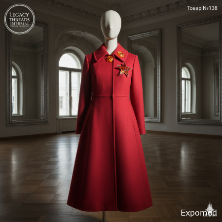 The "Red Queen" couture coat is a powerful tribute to the legendary Soviet fashion model Regina Zbarskaya and the height of the 1960s "Thaw" elegance. This garment captures the moment when Soviet fashion briefly stepped onto the world stage, blending severe structural lines with breathtaking luxury. The coat is tailored from a heavyweight "Siberian Crimson" wool melton, a fabric of exceptional density and warmth, dyed in a vibrant, commanding scarlet. Its silhouette is a dramatic A-line with a slightly oversized collar and broad, structured shoulders—a nod to the architectural style favored by the Moscow House of Models. The concealed fastening and deep welt pockets create a clean, modern aesthetic that remains timelessly chic. The interior is lined with "Volga Silk" in a contrasting cream, featuring an embroidered wheat motif. The "Legacy Threads" signature element elevates this piece from a historical replica to a masterpiece of Baltic heritage. The oversized decorative buttons on the collar are hand-carved from "Solar Flare" Amber—a rare variety of translucent orange amber with brilliant, sun-spangle inclusions that shimmer like captured fire. The true gem, however, is the "Kremlin Star" Lapel Pin. It is crafted from a single, massive piece of "Royal Cherry" Amber—a deep, translucent red variety—carved into a minimalist geometric star and set in polished silver. This pin serves as a bold statement of identity and refined luxury. Keywords: Regina Zbarskaya style, 1960s Soviet fashion, Red wool couture coat, Moscow House of Models, Solar flare amber, Royal cherry amber, Soviet Thaw elegance, Luxury vintage coat. ____________________________________________________________________________________________________________________________________________ Пальто от кутюр «Красная Королева» — это мощная дань уважения легендарной советской манекенщице Регине Збарской и расцвету элегантности эпохи «оттепели» 1960-х годов. Это изделие запечатлело момент, когда советская мода ненадолго вышла на мировую сцену, сочетая строгие структурные линии с захватывающей дух роскошью. Пальто сшито из тяжелого шерстяного мельтона цвета «Сибирский Пурпур» — ткани исключительной плотности и теплоты, окрашенной в яркий, властный алый цвет. Его силуэт представляет собой эффектный А-силуэт со слегка увеличенным воротником и широкими структурированными плечами — отсылка к архитектурному стилю, который предпочитал Общесоюзный Дом моделей. Потайная застежка и глубокие прорезные карманы создают чистую современную эстетику, которая остается вне времени. Внутренняя отделка выполнена из кремового «Волжского шелка» с вышитым мотивом пшеницы. Фирменный элемент Legacy Threads превращает эту вещь из исторической реплики в шедевр балтийского наследия. Крупные декоративные пуговицы на воротнике вырезаны вручную из янтаря «Солнечная Вспышка» — редкого сорта прозрачного оранжевого янтаря с блестящими включениями-чешуйками, которые мерцают, словно пойманный огонь. Однако истинной жемчужиной является булавка на лацкане «Кремлевская Звезда». Она изготовлена из цельного массивного куска янтаря «Королевская Вишня» — глубокого полупрозрачного красного сорта, вырезанного в форме минималистичной геометрической звезды и оправленного в полированное серебро. Ключевые слова: стиль Регины Збарской, советская мода 1960-х, красное шерстяное пальто, Дом моделей на Кузнецком мосту, янтарь «солнечная вспышка», красный янтарь, мода оттепели, роскошное винтажное пальто ____________________________________________________________________________________________________________________________________________ expomod.kz